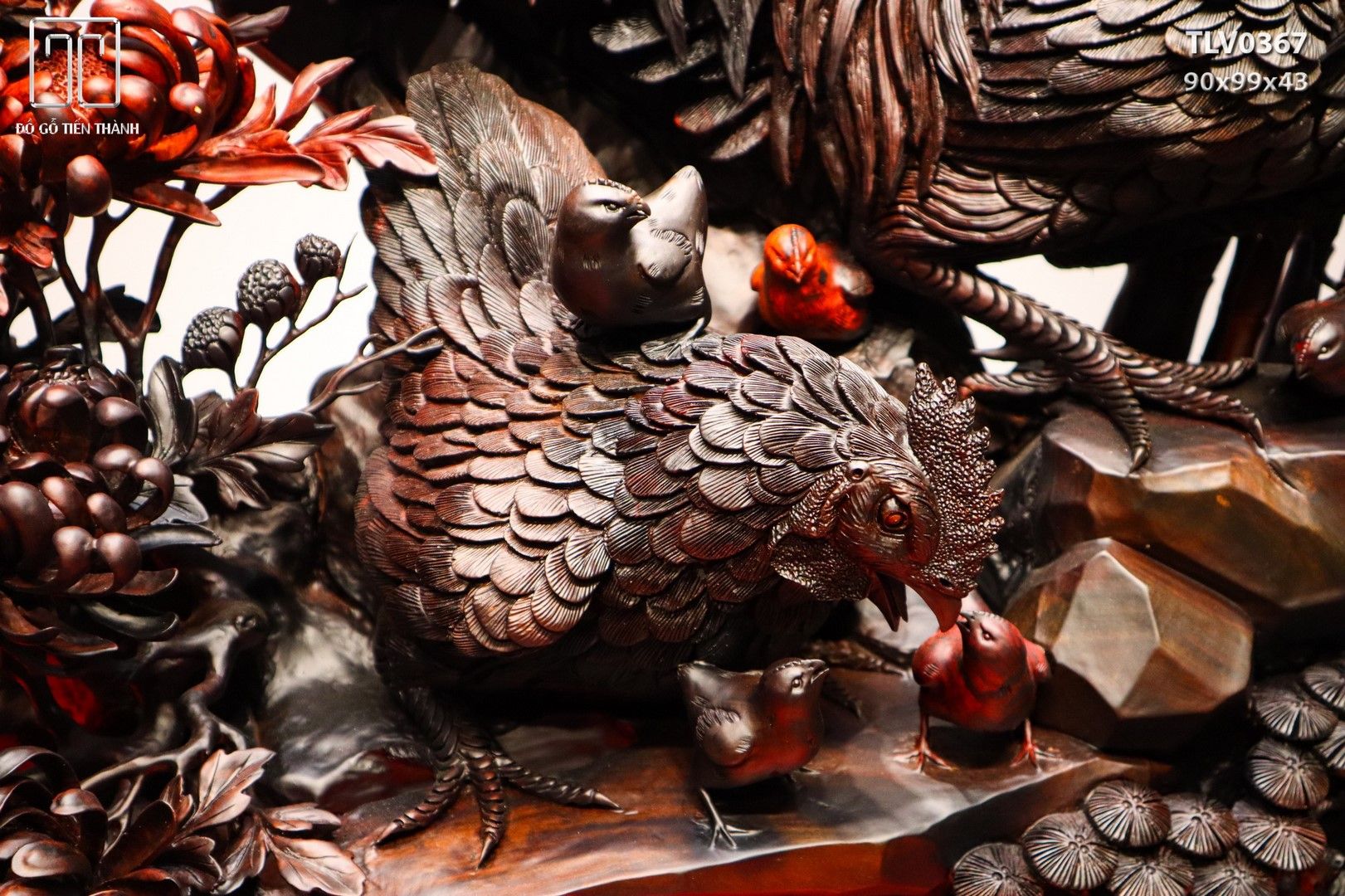 Với chất liệu gỗ tự nhiên kết hợp với bàn tay khéo léo của người thợ điêu khắc, đã mang đến cho người chơi một tác phẩm tuyệt vời về gia đình gà. Đó là khung cảnh gà trống, gà mái, cùng các con đang đi kiếm ăn cùng nhau.