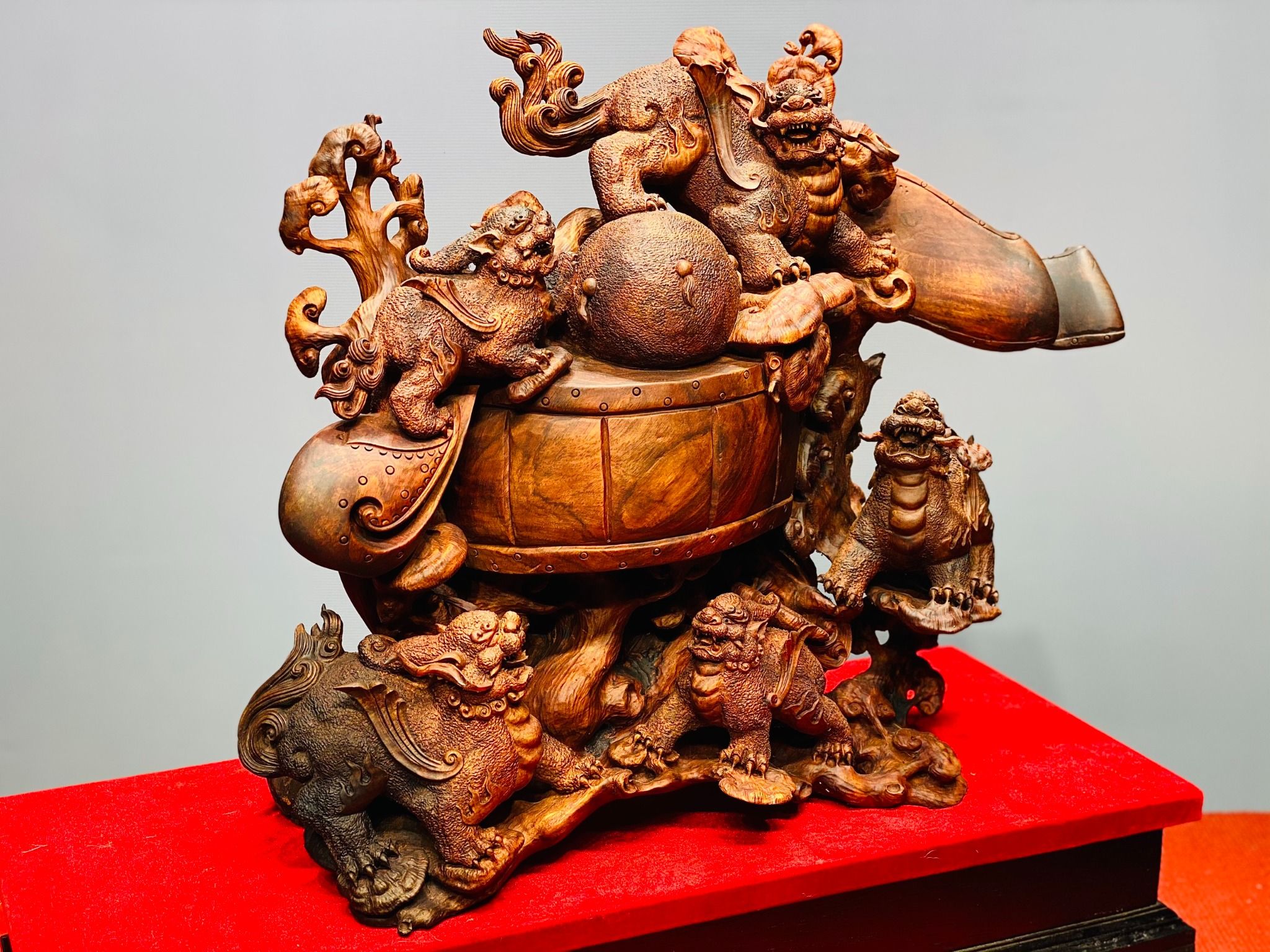 Gia đình hỏa kỳ lân gỗ sưa.