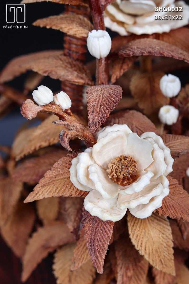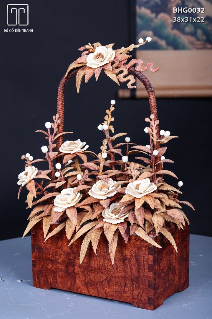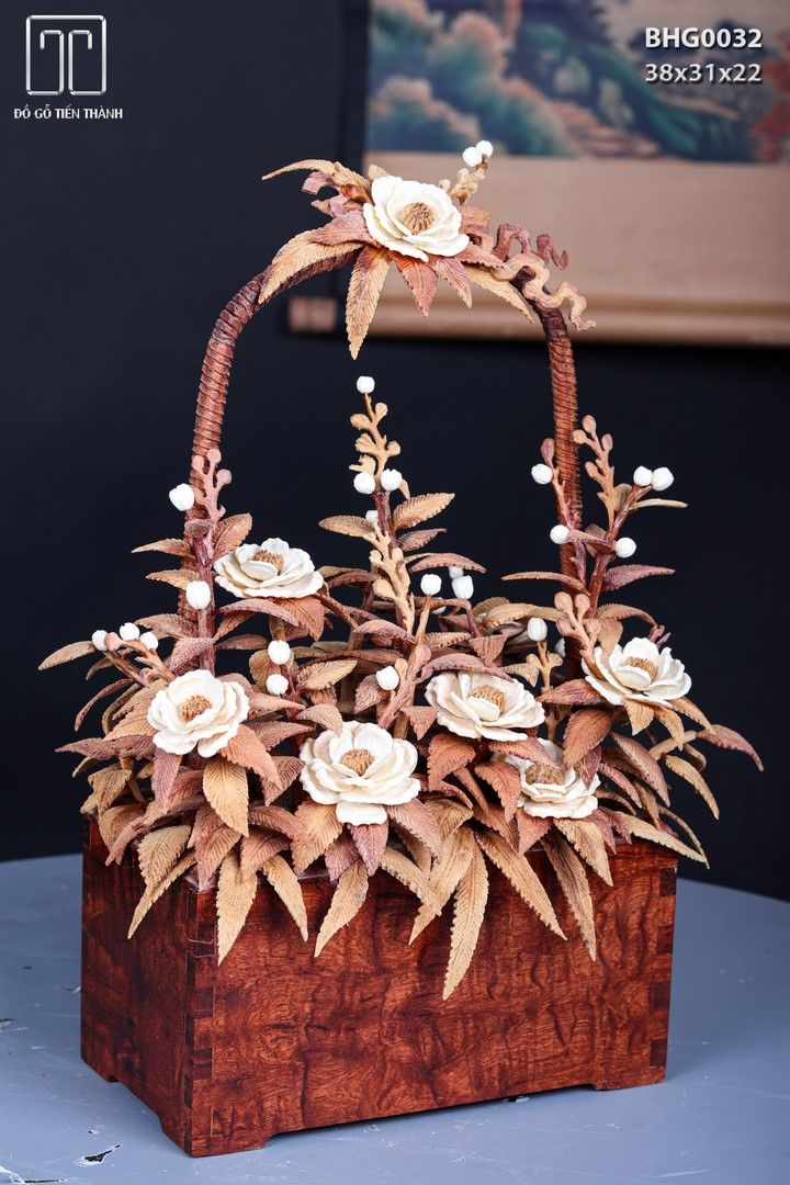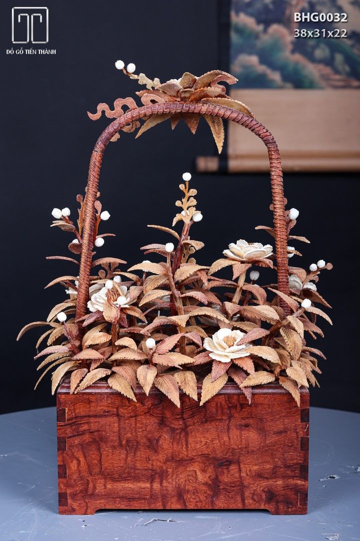 Giỏ Hoa Phù Dung Gỗ Sưa Ngà Voi