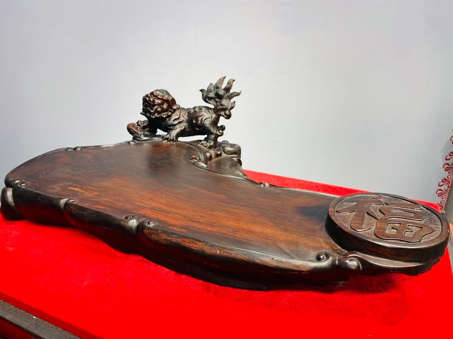 Khay trà Nghê Chữ Phúc Gỗ Trắc