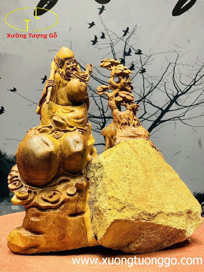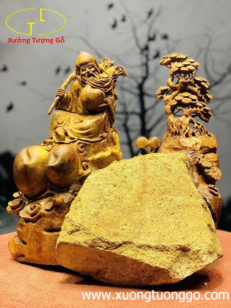 Ông thọ ôm đá gỗ hương.