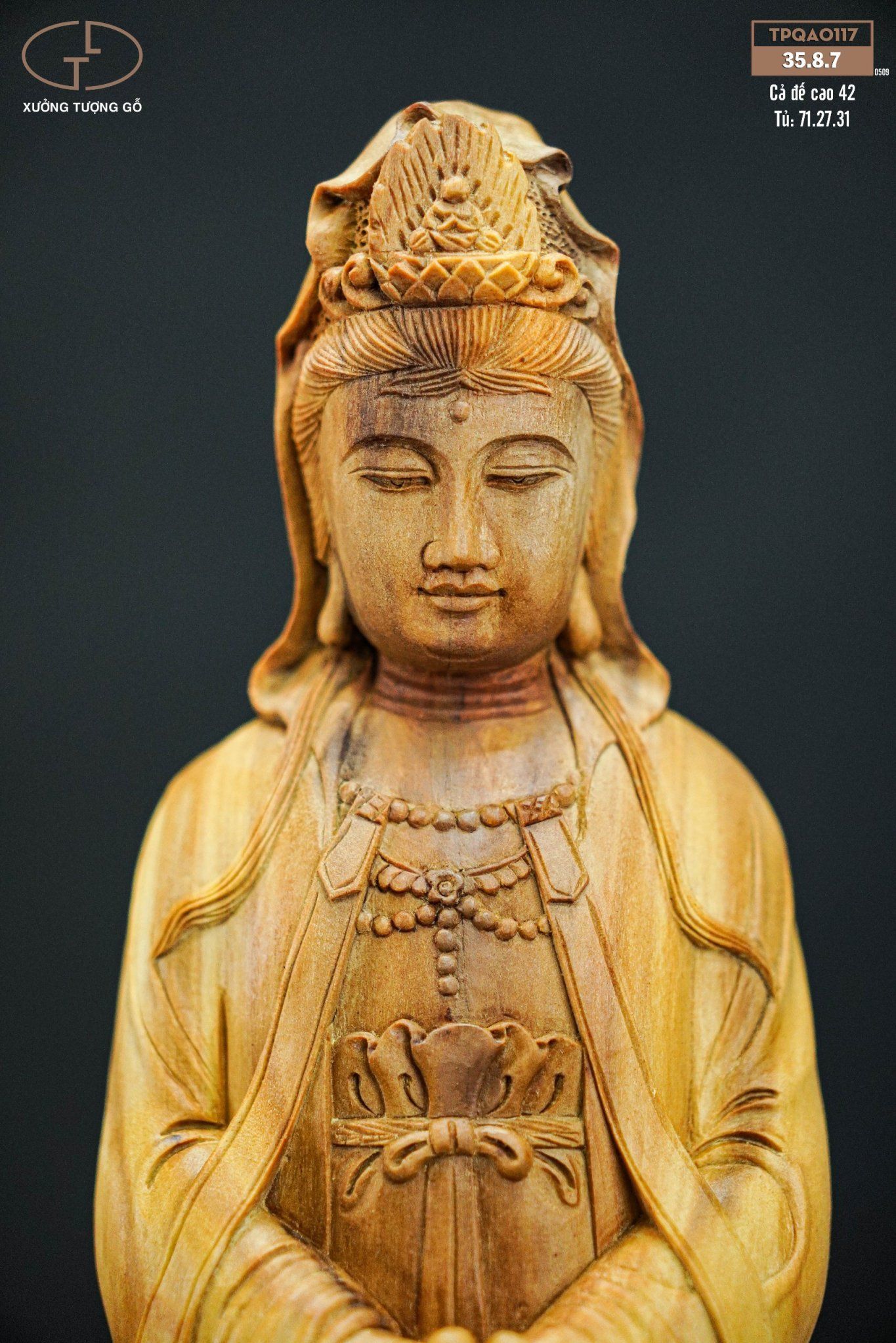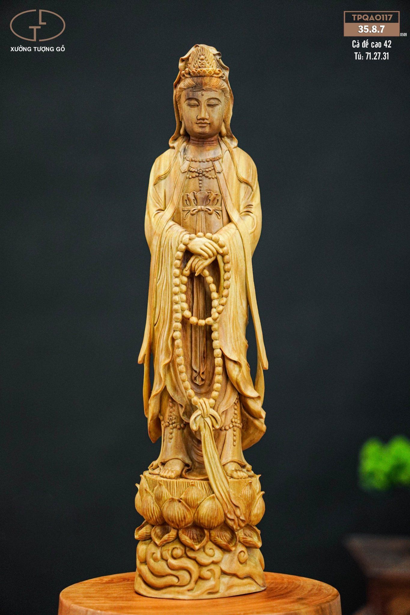Tượng Phật Bà Quan Âm tọa đài sen là một tác phẩm tượng phật bằng gỗ chứa nhiều ý nghĩa phong thủy vô cùng sâu sắc. Phật Bà Quan Âm tượng trưng cho đức vị tha, lòng từ bi và giàu lòng yêu thương của Ngài. Thờ tượng Quan Âm Bồ Tát trong nhà với mong muốn gia chủ sẽ có cuộc sống hạnh phúc và viên mãn, phật sẽ luôn độ trì, phù hộ gia chủ làm ăn phát đạt, gặp được nhiều may mắn.