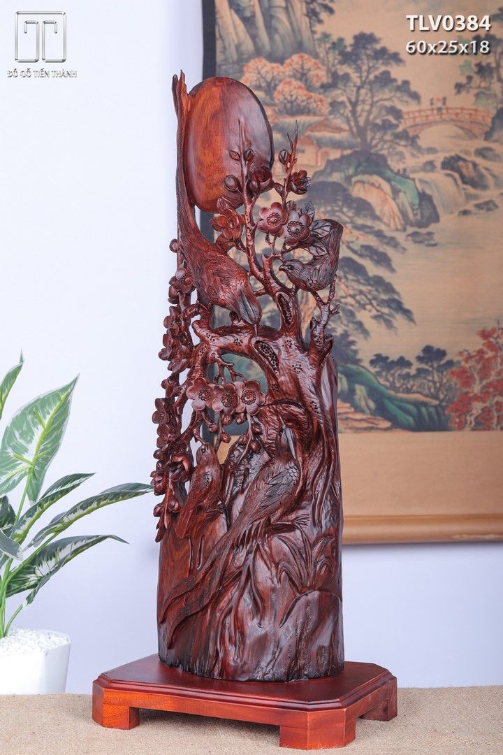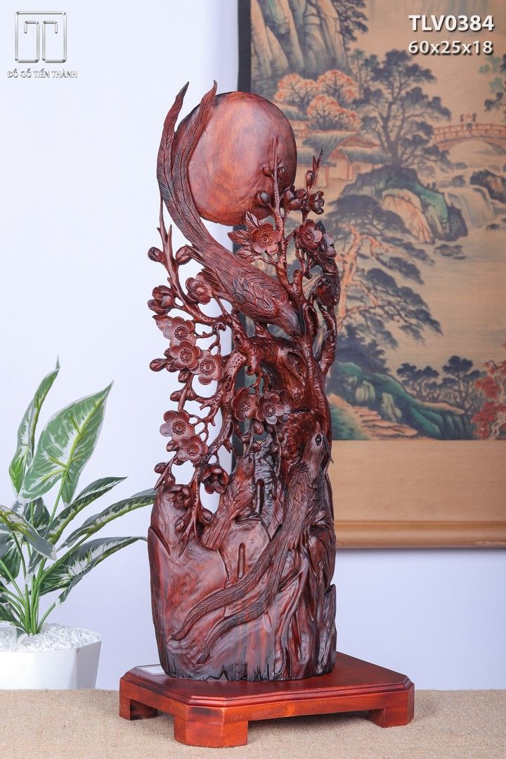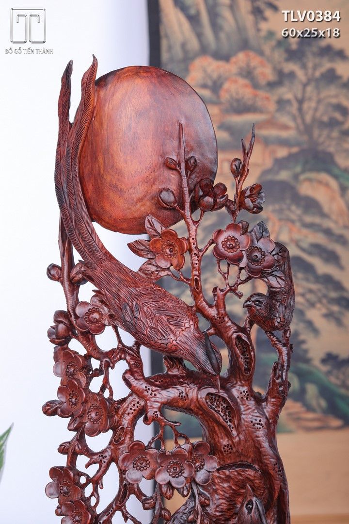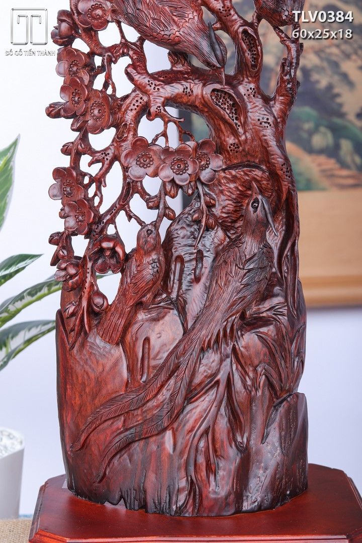 Phu Thê Viên Mãn Chim Trĩ Hoa Mai Gỗ Trắc