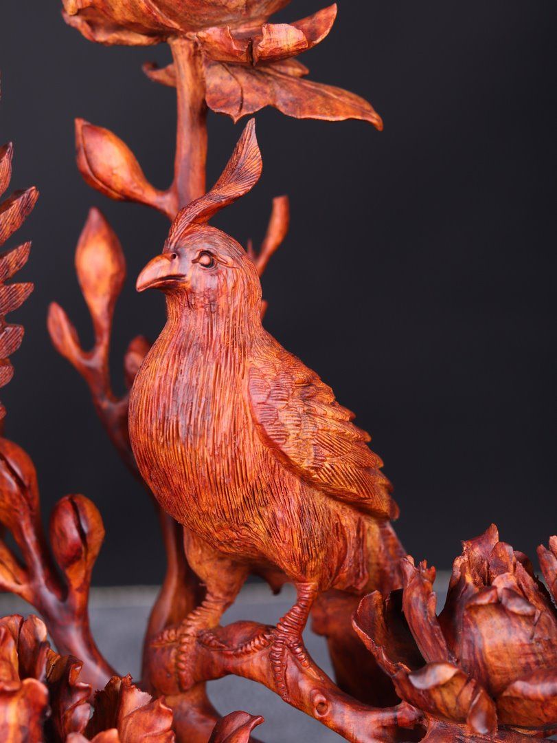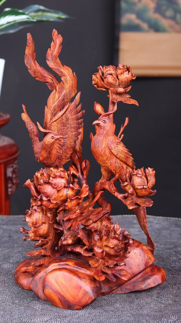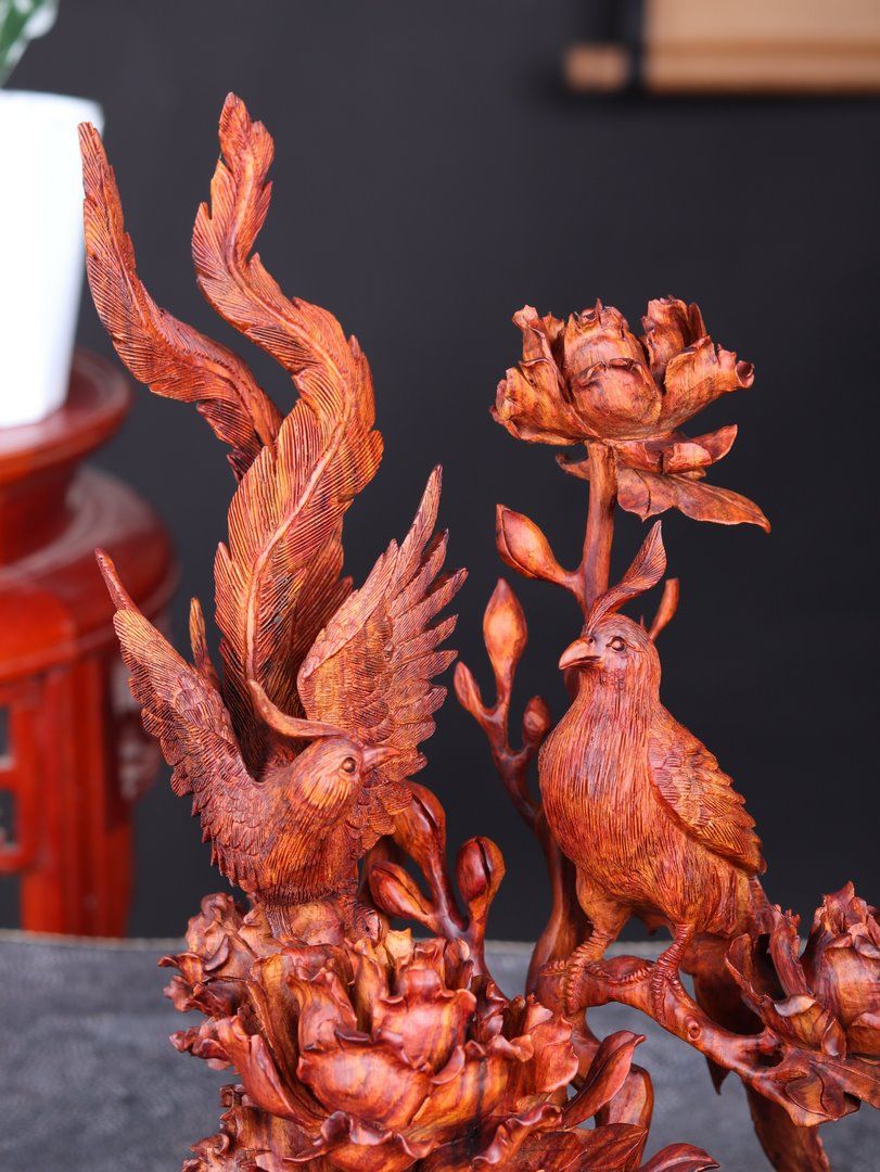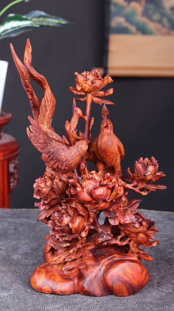 Phu Thê Viên Mãn Hoa Mẫu Đơn Gỗ Sưa