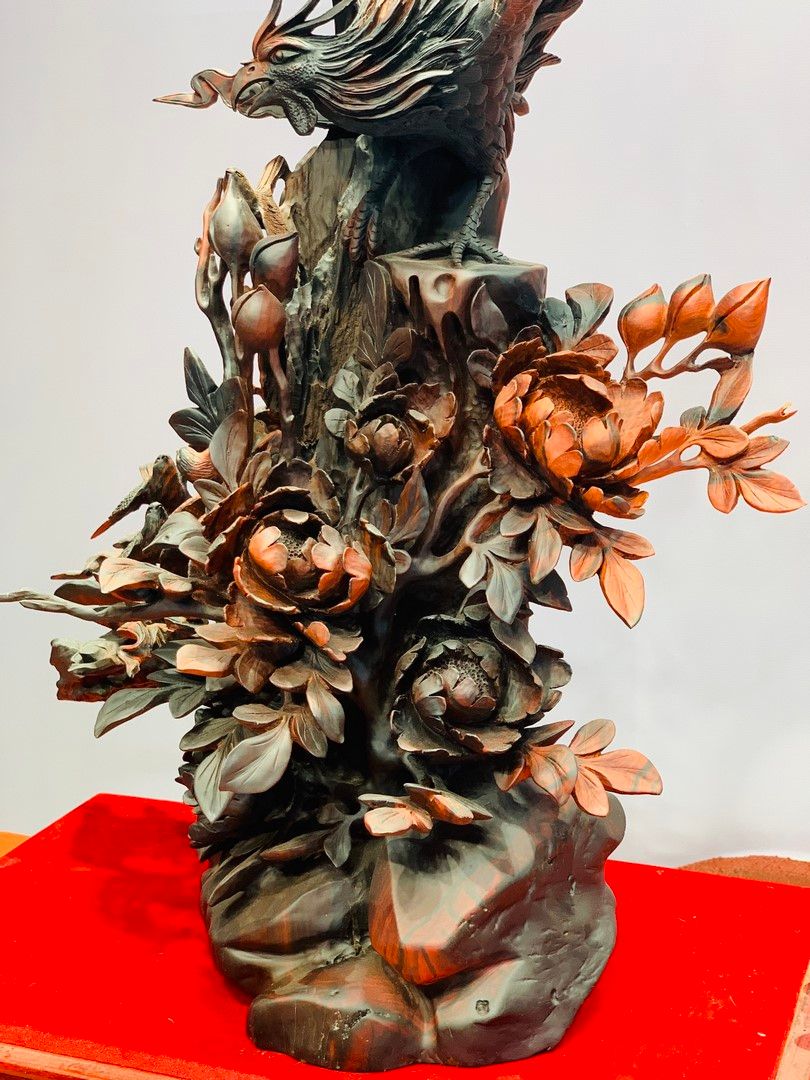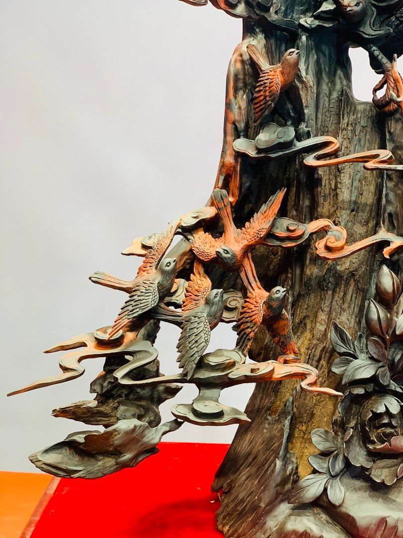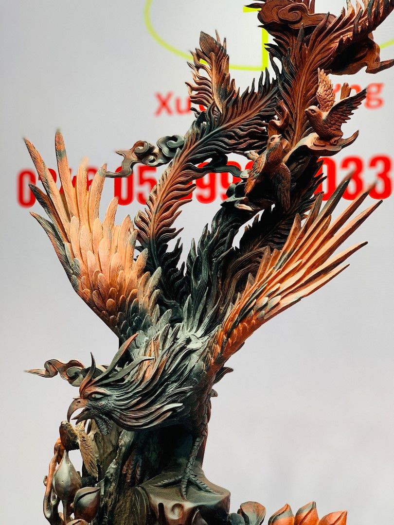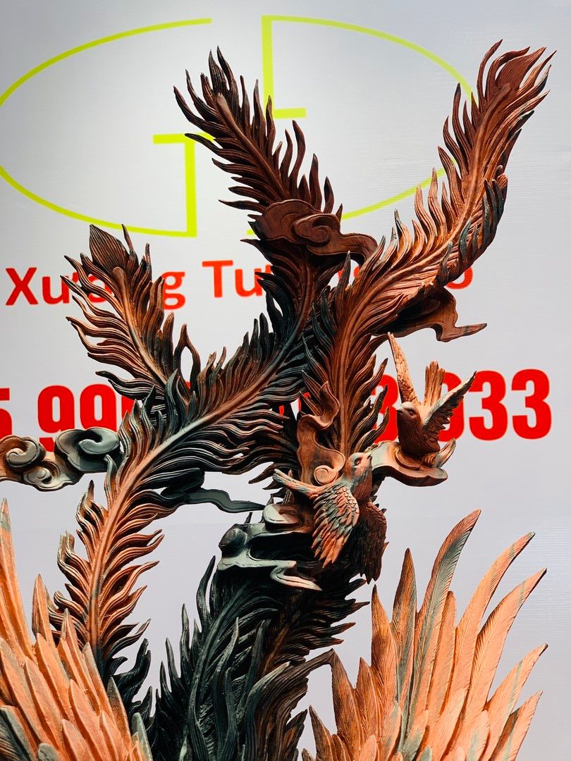 Đặc biệt, Phượng Hoàng được đục từ gỗ sưa còn tăng thêm giá trị tác phẩm, tôn lên vẻ đẹp tôn quý của vua các loài chim.