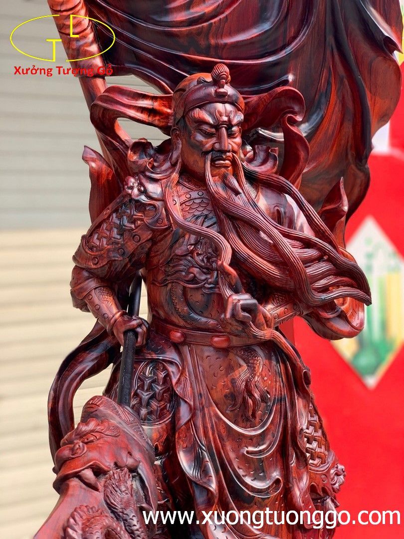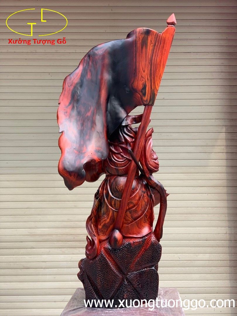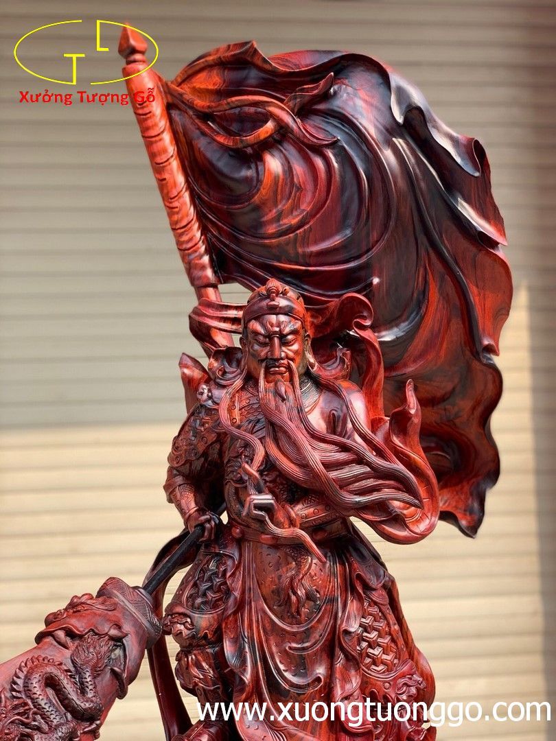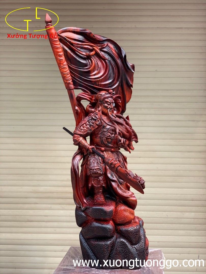 Quan Công đứng cờ gỗ trắc.