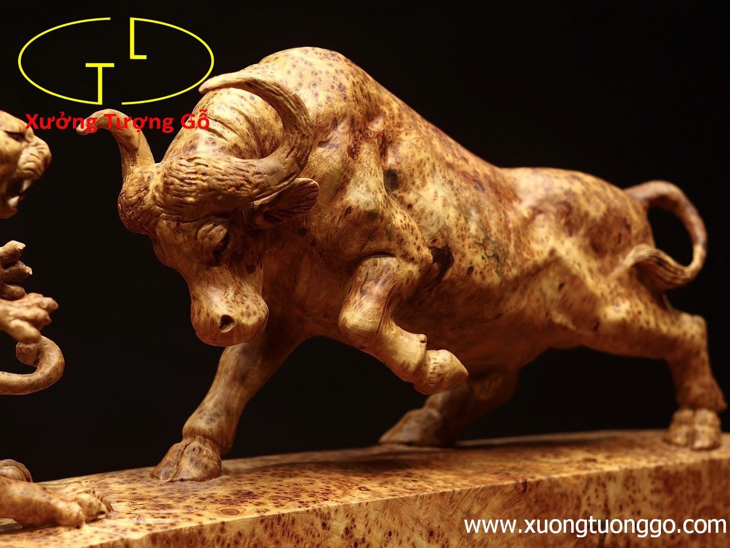 Bức tượng được đục tay với nét đục sắc nét mà mềm mại, linh vật được khắc họa sống động y như thật.