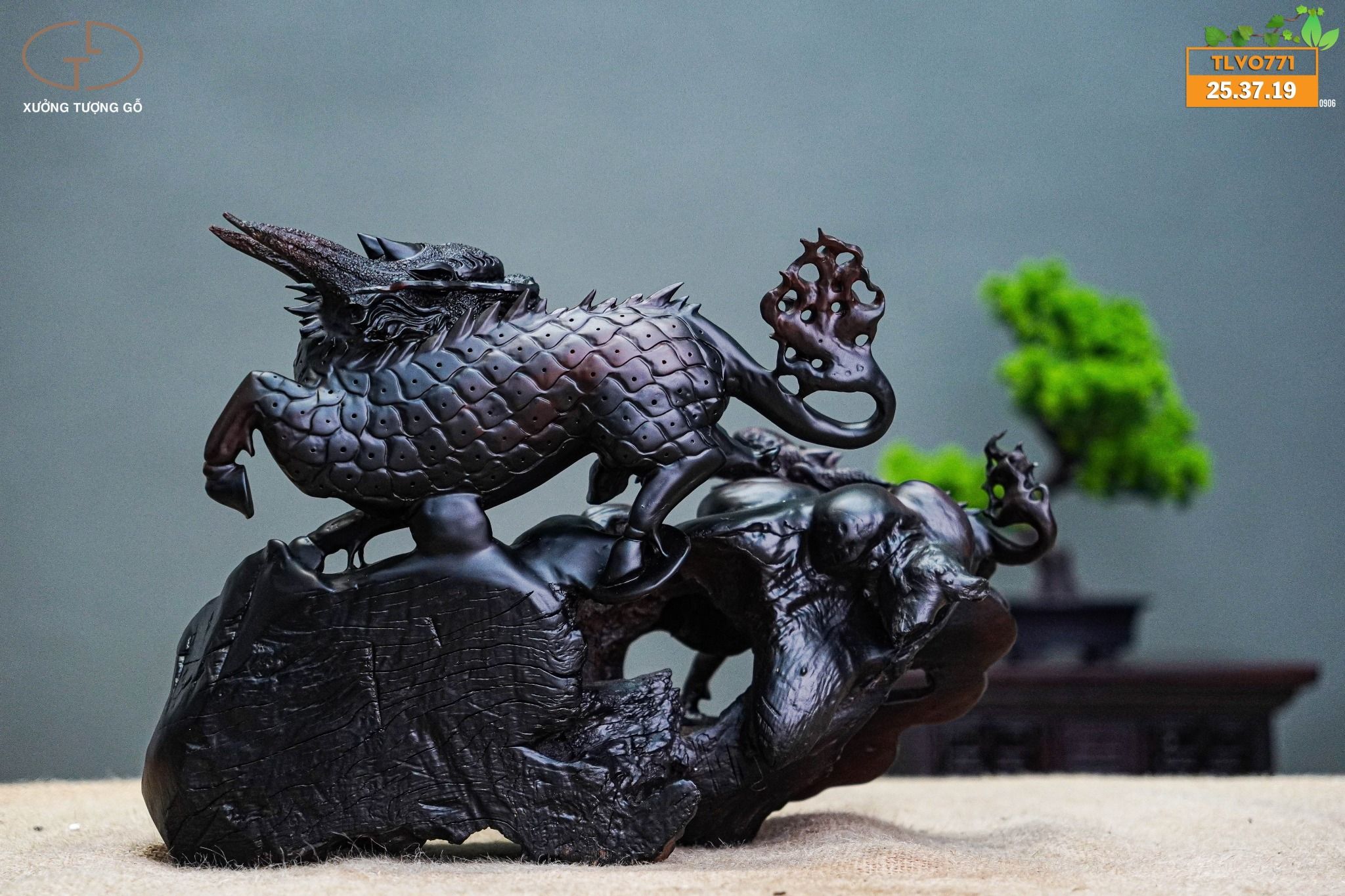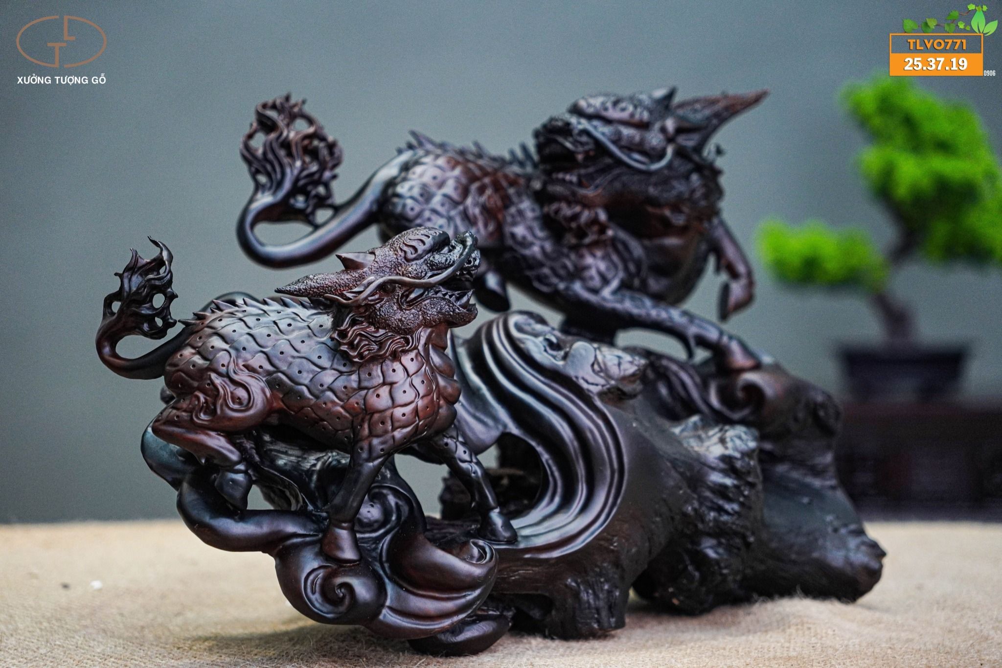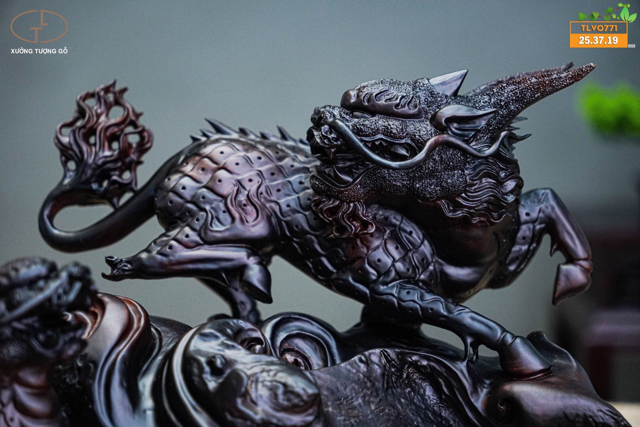 Kỳ Lân có phần đầu giống rồng, có hai sừng, thân hình giống hươu, phủ đầy vảy, lông đuôi dài, cuộn sóng. Thoạt nhìn, hình dáng và thần thái của Kỳ lân trông rất sinh động, mạnh mẽ, thần bí và tràn trề sức sống.