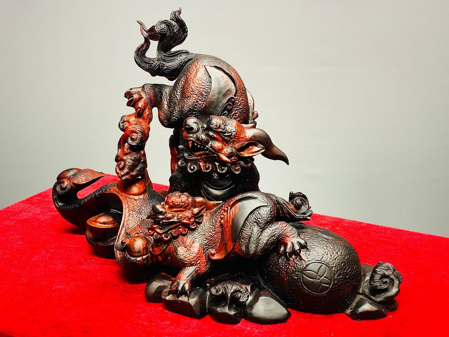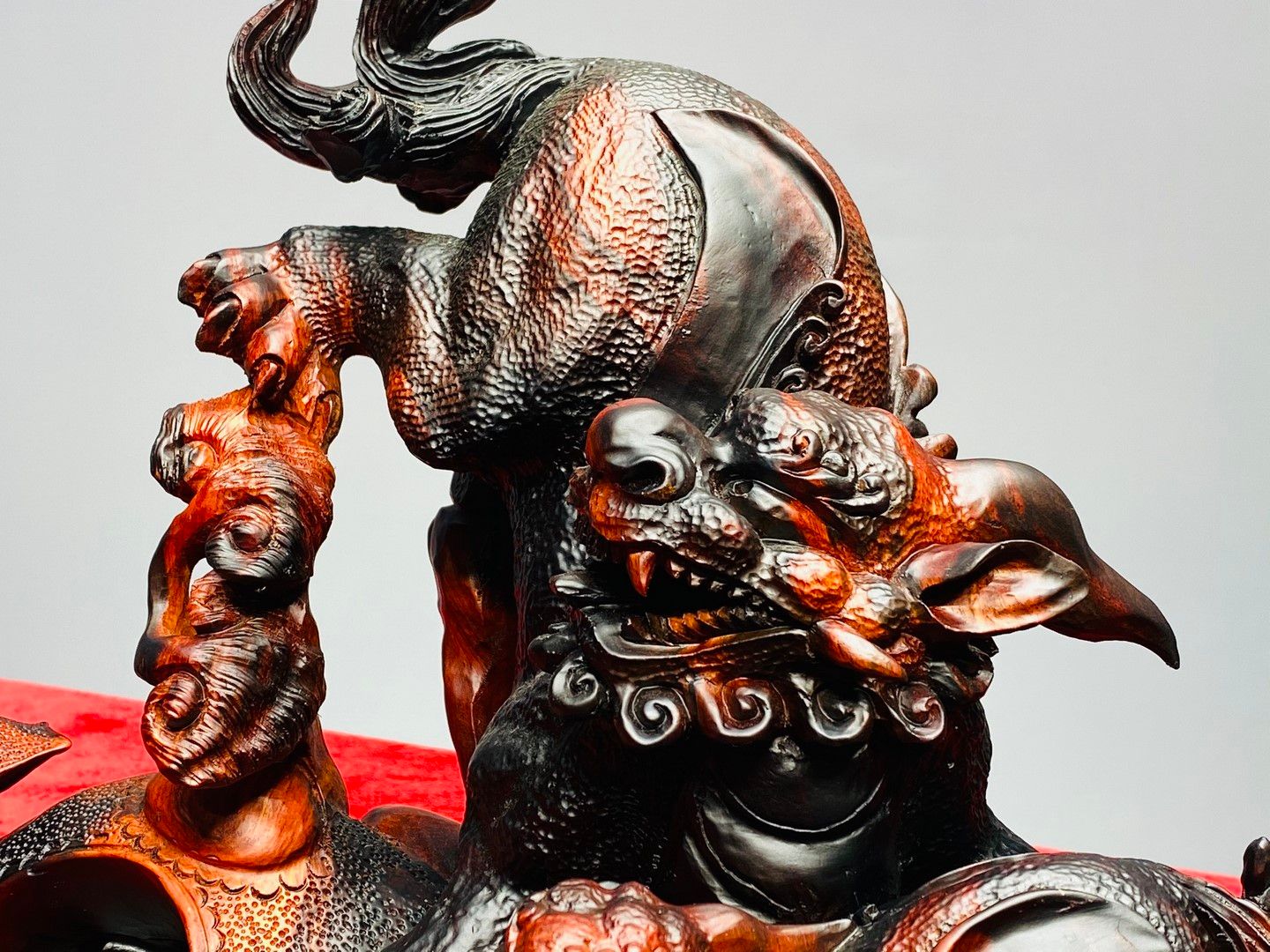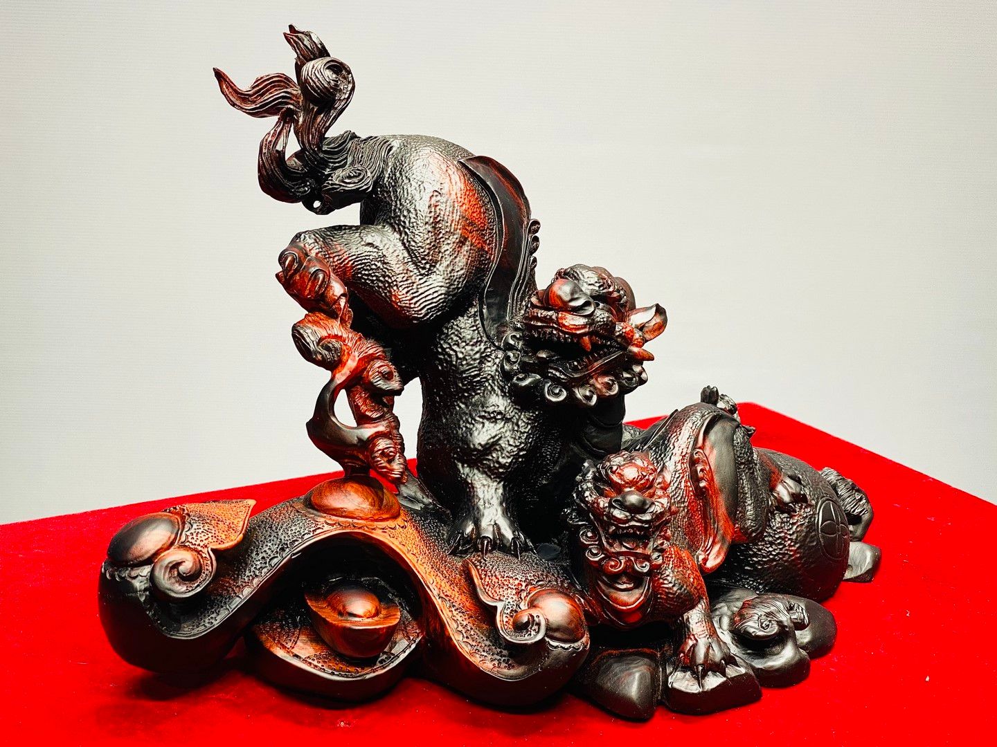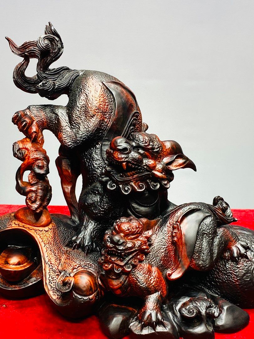 Song Nghê Cầu Gậy Như Ý Gỗ Trắc