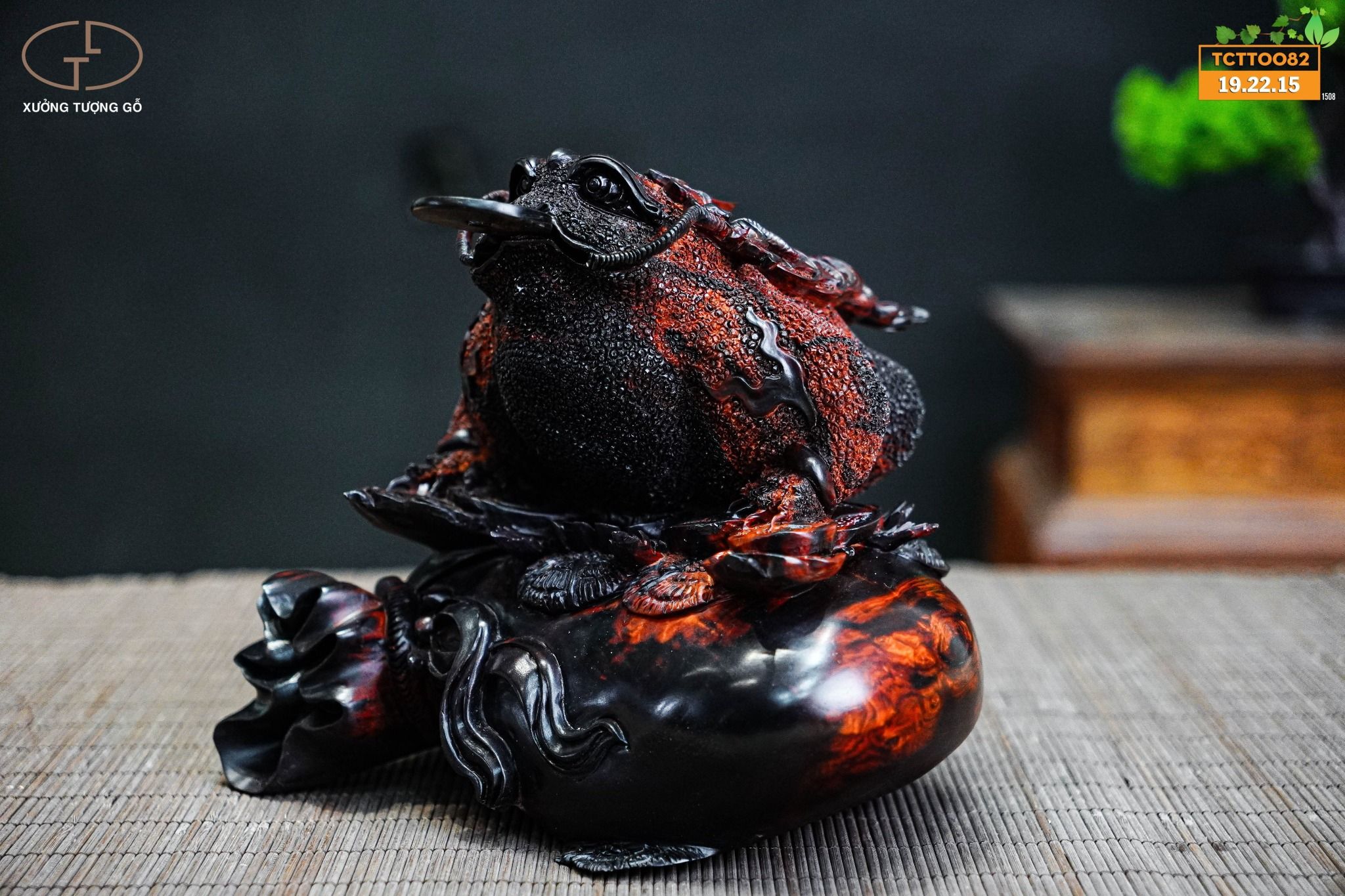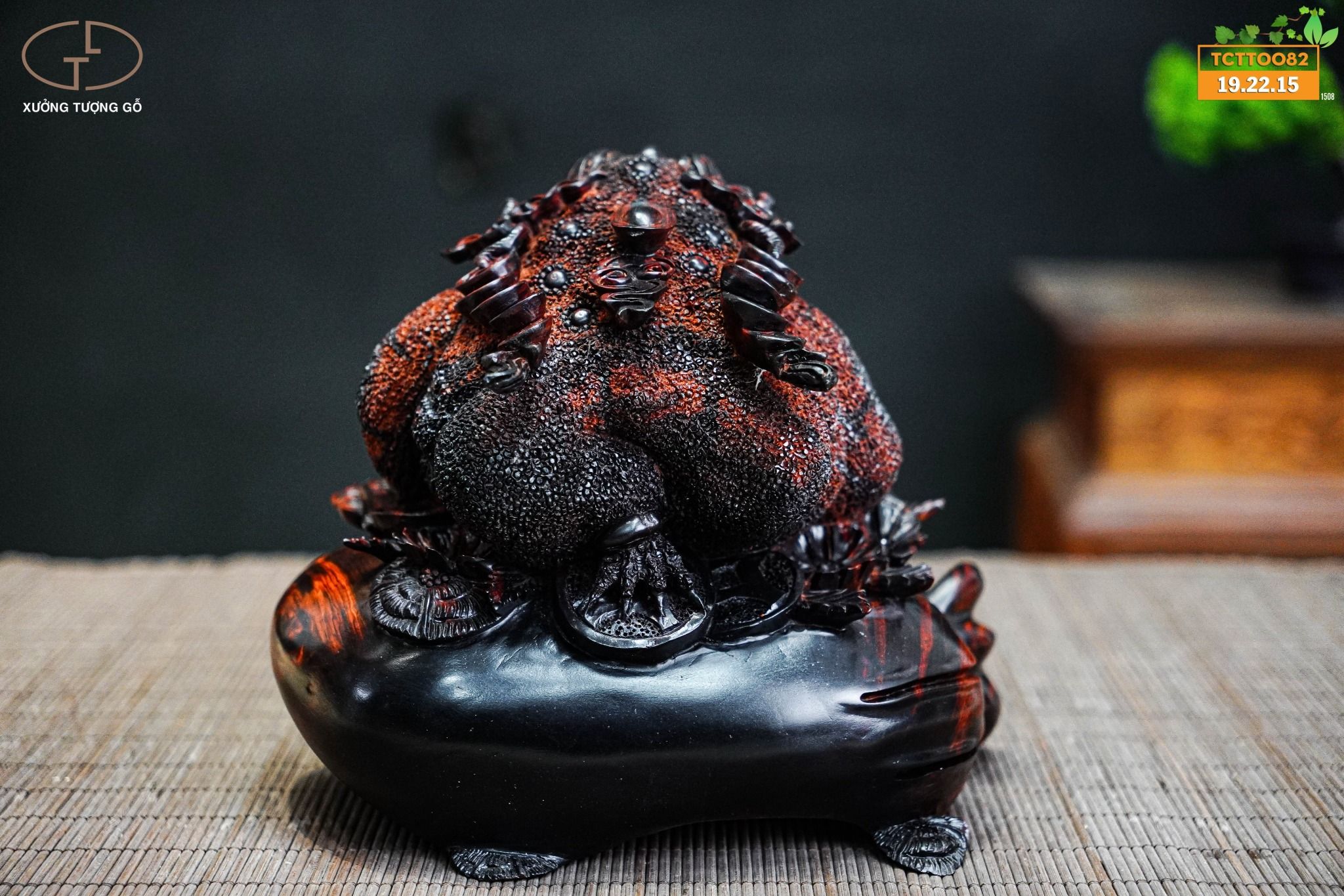 Tượng Thiềm Thừ là hình tượng Cóc ba chân có 7 nốt sần đặc biệt trên lưng, theo đúng hình dáng của chòm sao Đại Hùng (Bắc Đẩu thất tinh) nằm hướng cực Bắc.Trên đầu Cóc có hình Lưỡng Nghi, miệng ngậm đồng tiền cổ, bên cạnh lưng có mang hai xâu tiền và 3 chân Cóc đạp lên hai lớp tiền cổ. Ý nghĩa của Cóc ngậm tiền chính là địa diện của tiền tài.