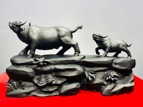Trâu Mẫu Tử Gỗ Mun Sừng Khánh Hoà