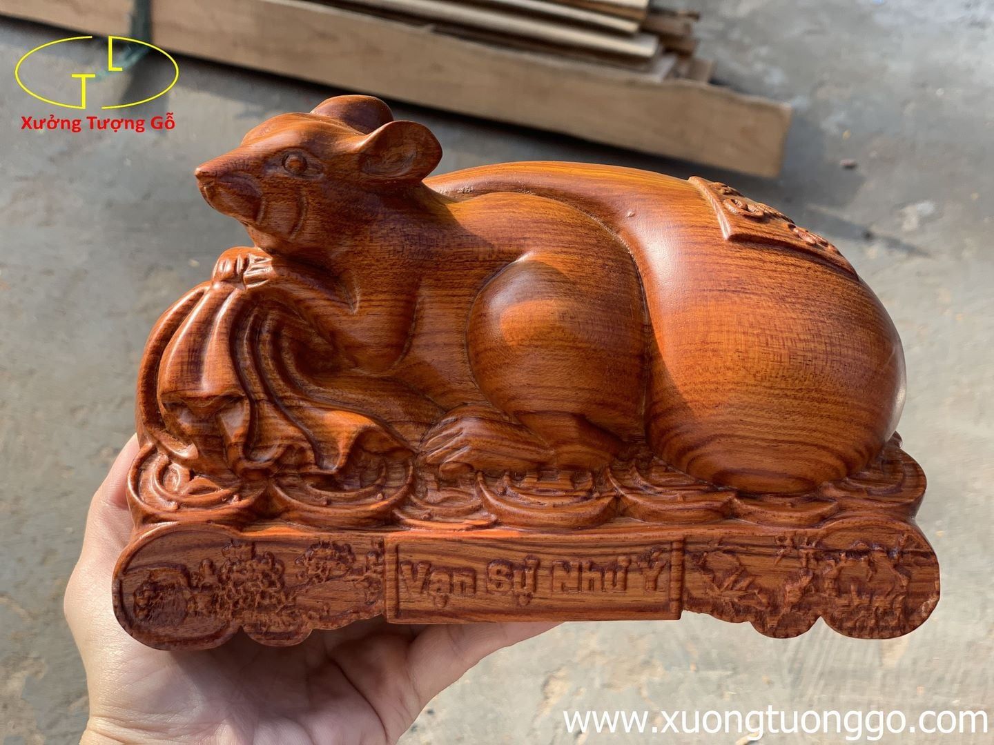 Tượng Chuột Kéo Bao Tiền Gỗ Hương Đá