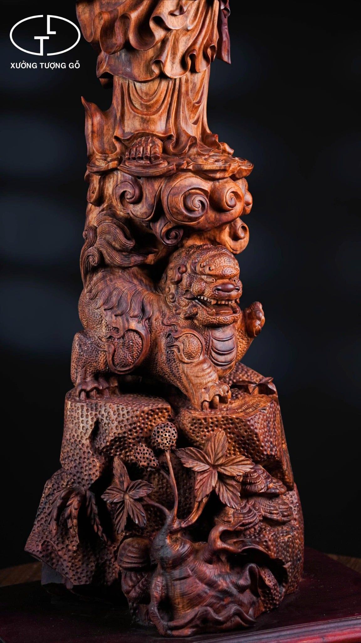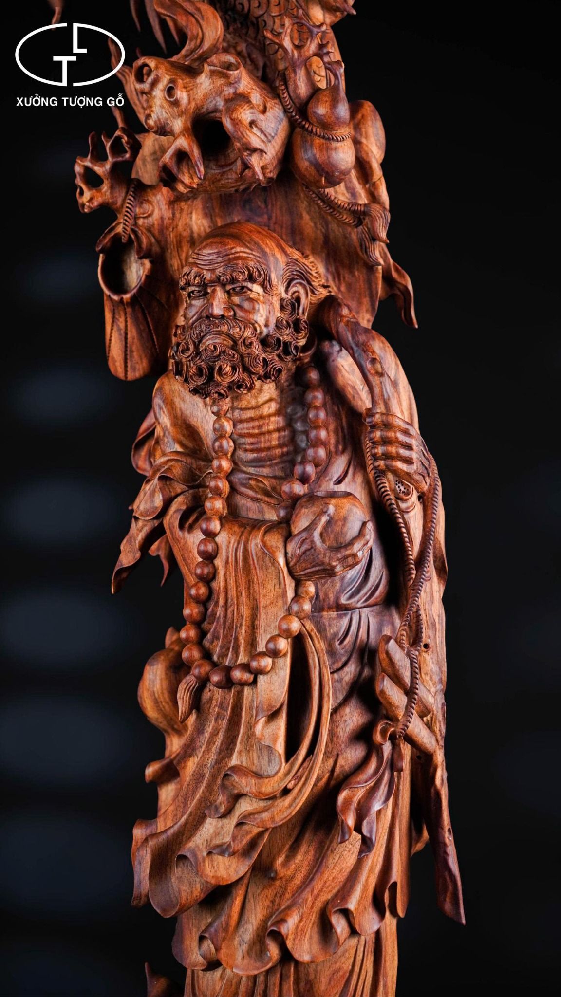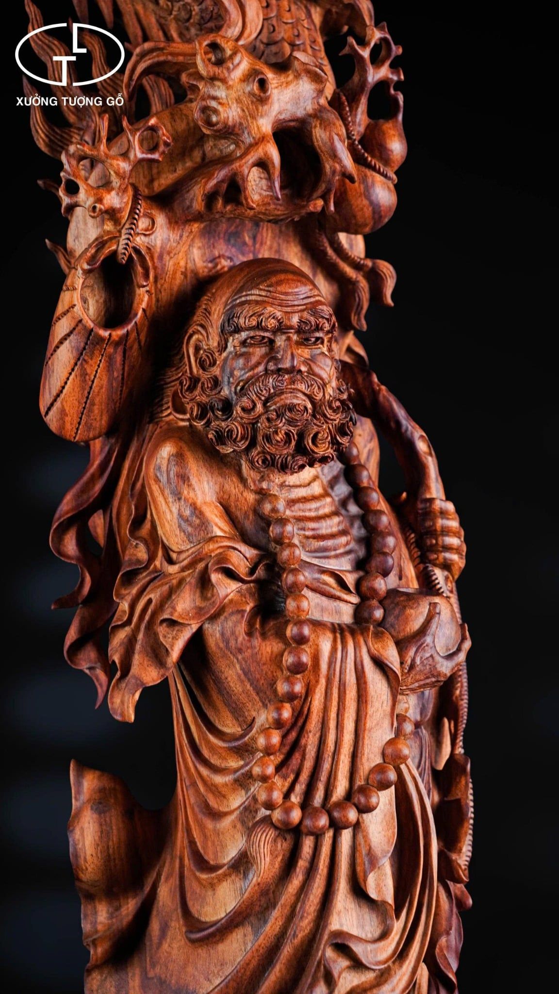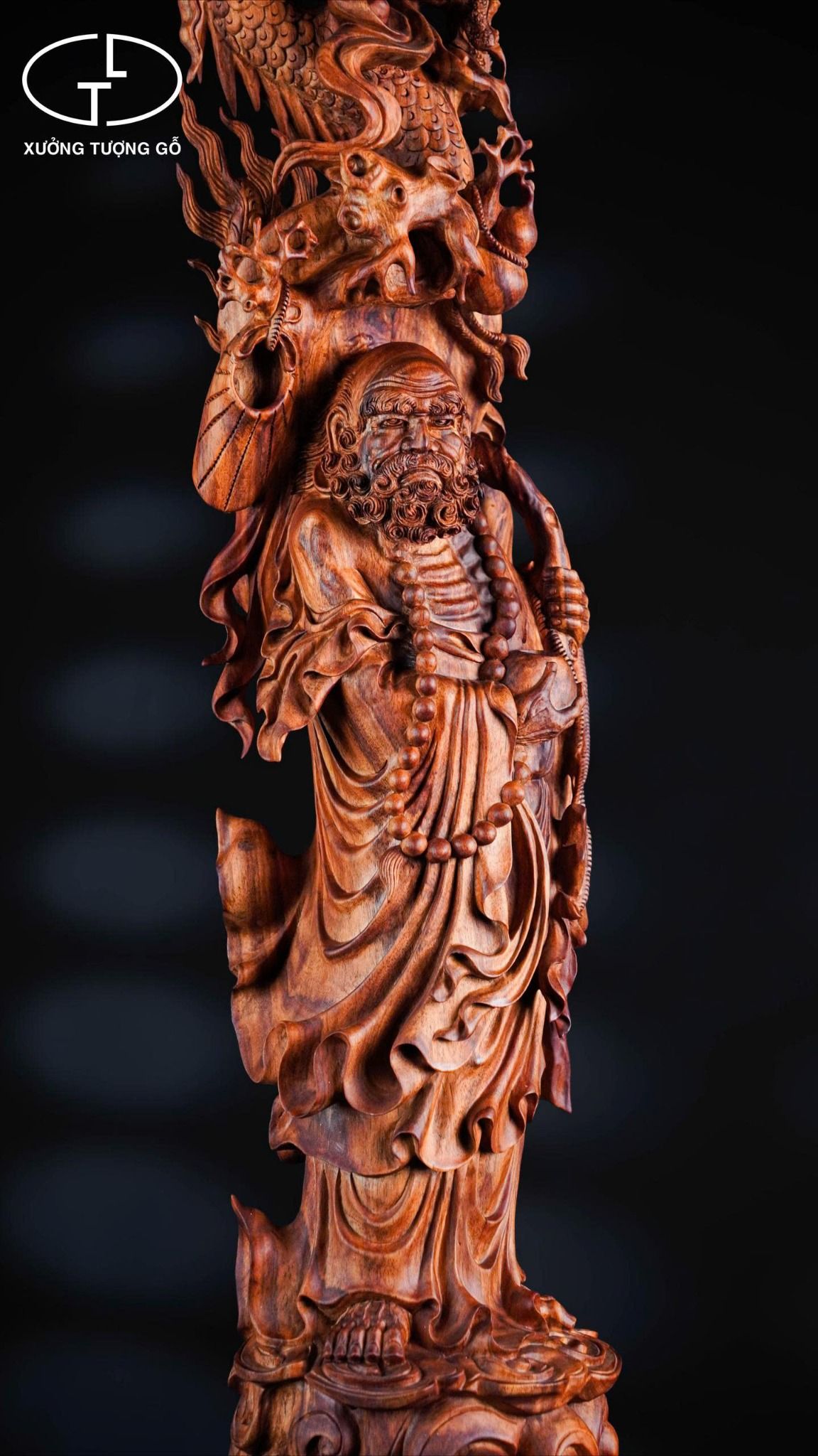 Tượng Đạt Ma hàng lân gỗ sưa