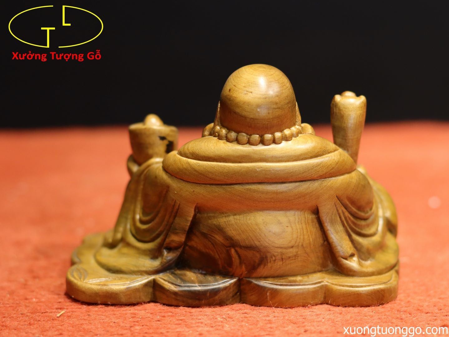 Tượng Di Lặc Nâng Gậy Như Ý Để Ô Tô Gỗ Bách Xanh