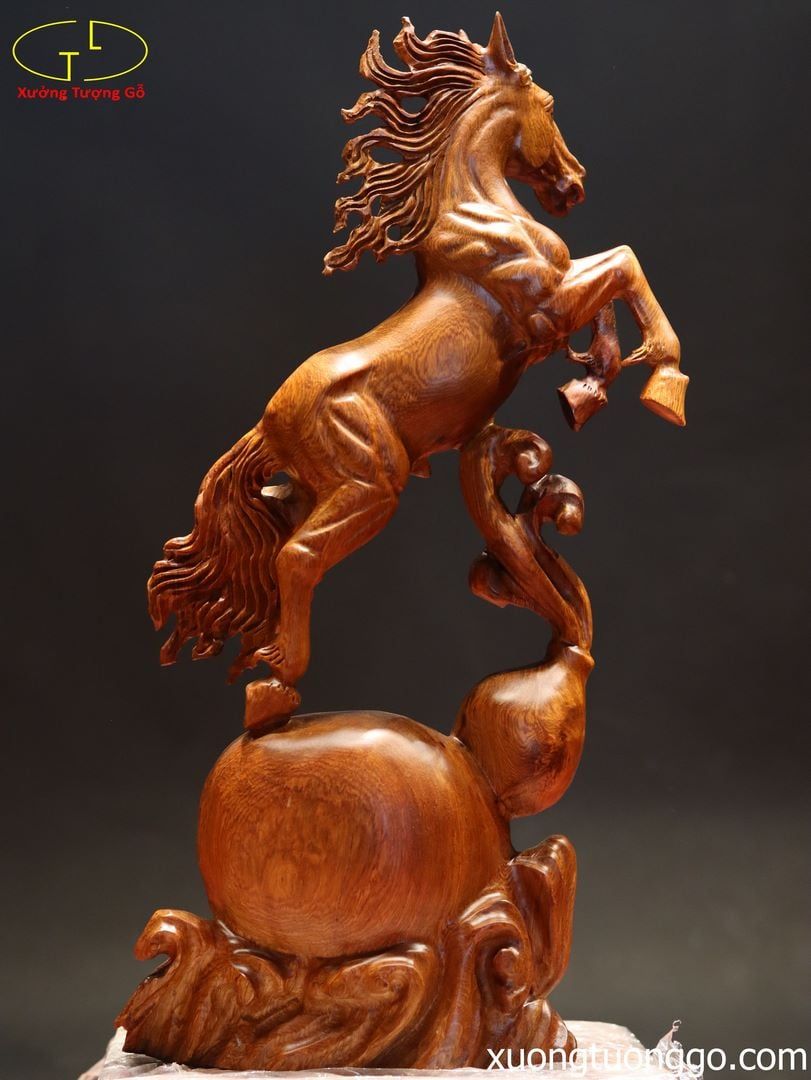 Tượng Độc Mã Đứng Hồ Lô Gỗ Hương
