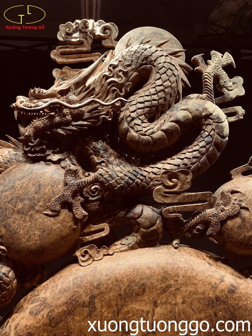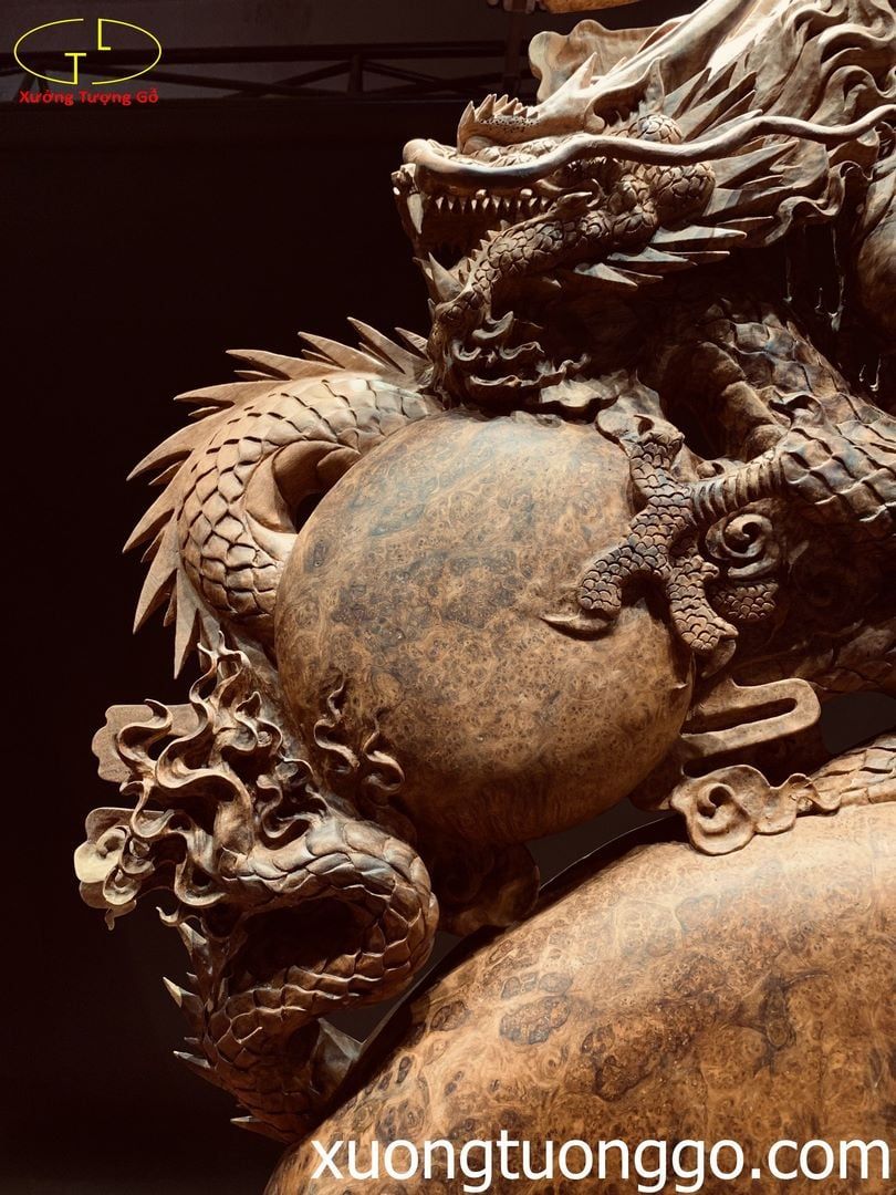 Tượng Nhất Long Quần Ngọc Gỗ Nu Hương