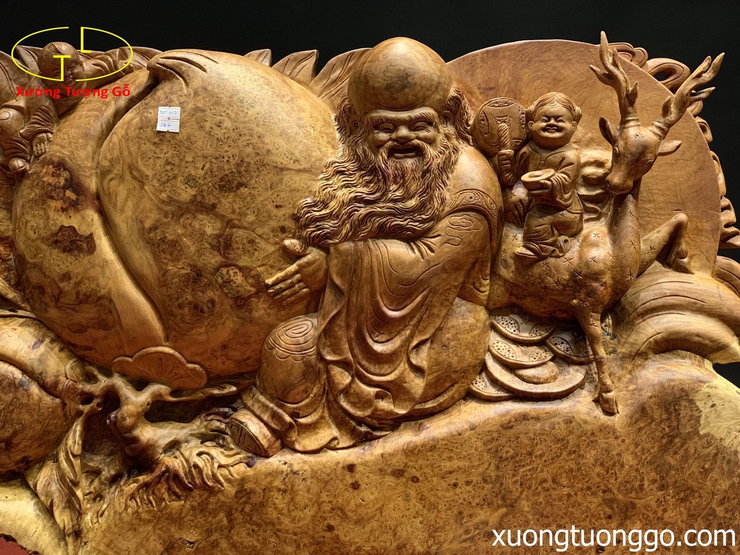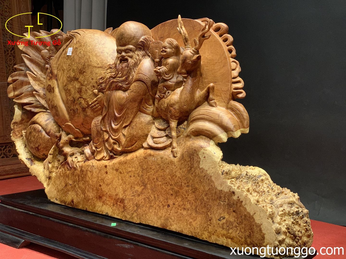 Tượng Ông Thọ Nhị Tiểu Vác Quả Đào Gỗ Nu Hương