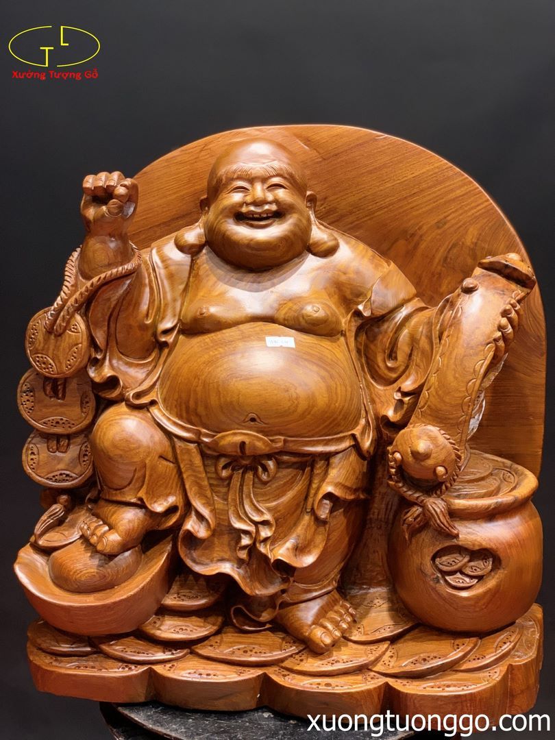 Tượng Phật Di Lặc Kéo Dây Tiền Gỗ Hương