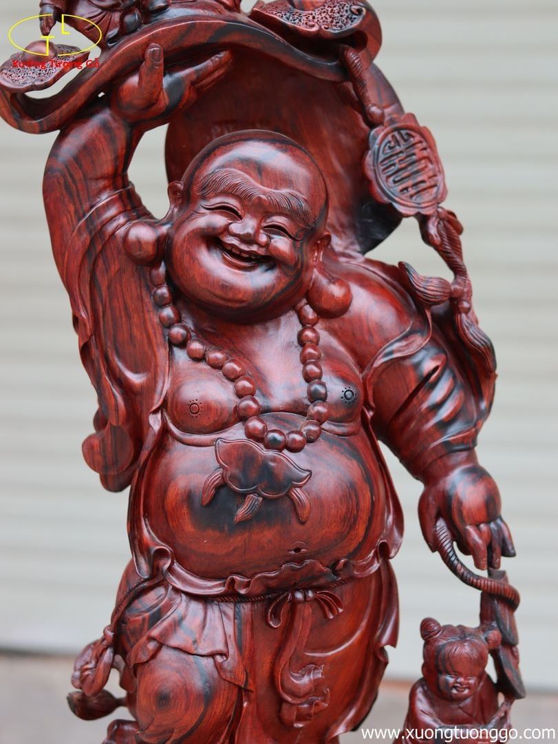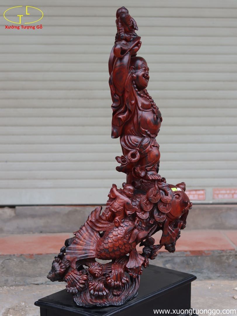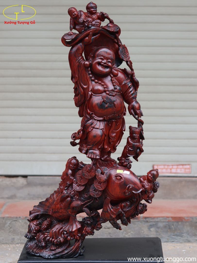 Tượng Phật Di Lặc Ngũ Tiểu Đứng Cá Chép Gỗ Trắc